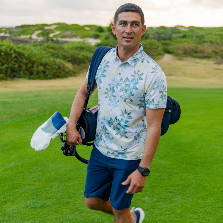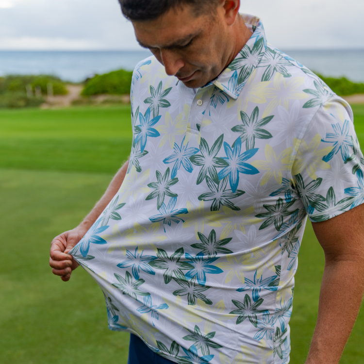 Big florals, laid-back feel. The Kuilima Polo pulls its vibe from the lush, blooming coastlines of O‘ahu's North Shore. Bold yet easygoing, it's made with lightweight, breathable fabric that moves with you—from first tee to last light. A print built for warm air, open fairways, and the calm beyond the break.