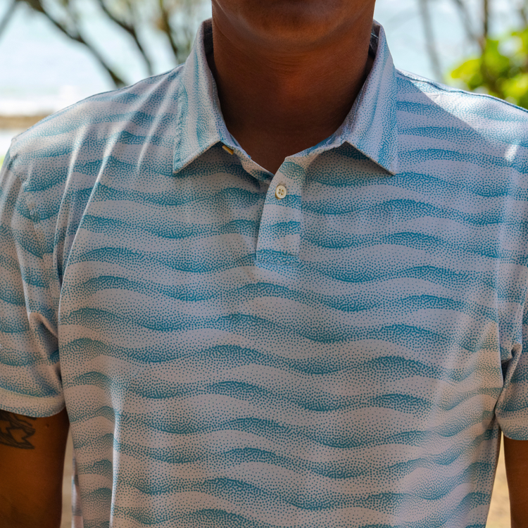 Subtle waves roll across the horizon in this low-key print built for slow days and sunset rounds. The Rollers colorway blends soft ocean blues with just enough movement to keep things interesting. Lightweight, breathable, and easy to wear from the course to the coast.