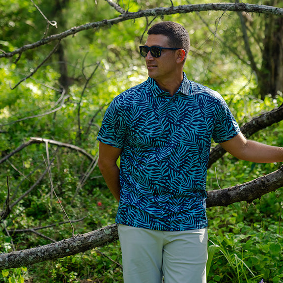 Easygoing and sun-washed, the South Shore Polo captures the laid-back rhythm of island rounds. With a mellow print inspired by breezy coastlines and warm trades, it's made from light, breathable stretch fabric that moves with you. Built for fairways, beaches, and everything in between.